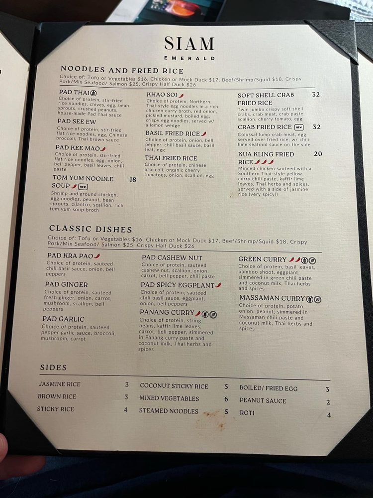 Siam Emerald excels in delivering authentic Thai flavors through its thoughtfully curated menu. The lunch specials, including favorites like Drunken Noodles and Spicy Basil Fried Rice, spotlights their attention to spice, freshness, and quality ingredients. Each dish shines with vibrant flavors, making dishes such as the Green Curry a must-try for spice lovers.