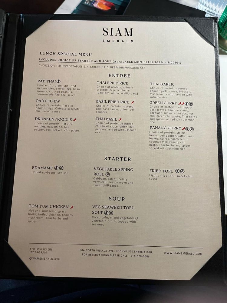 Welcome to Siam Emerald, a delightful addition to Rockville Centre’s dining scene that transports you straight to Thailand. This charming Thai restaurant combines an intimate atmosphere with trendy decor, perfect for everything from date nights to group gatherings.